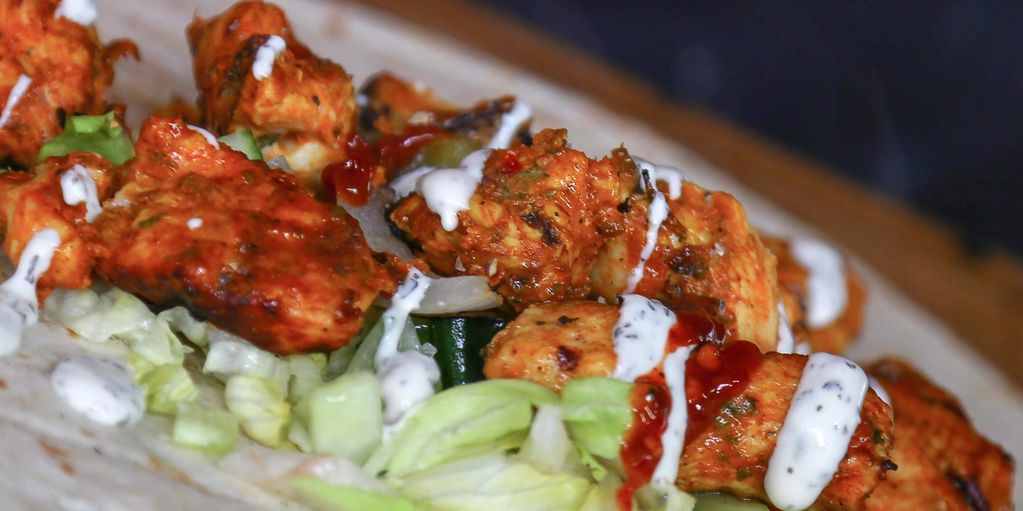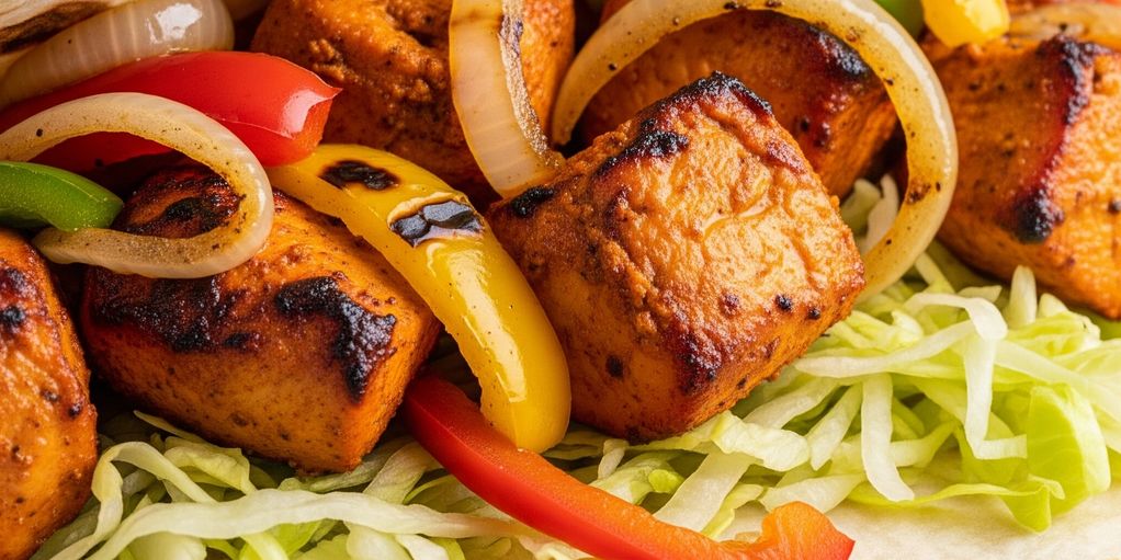 Experience the vibrant taste of India with a succulent skewer of chicken breast, deeply marinated in aromatic Indian spices.